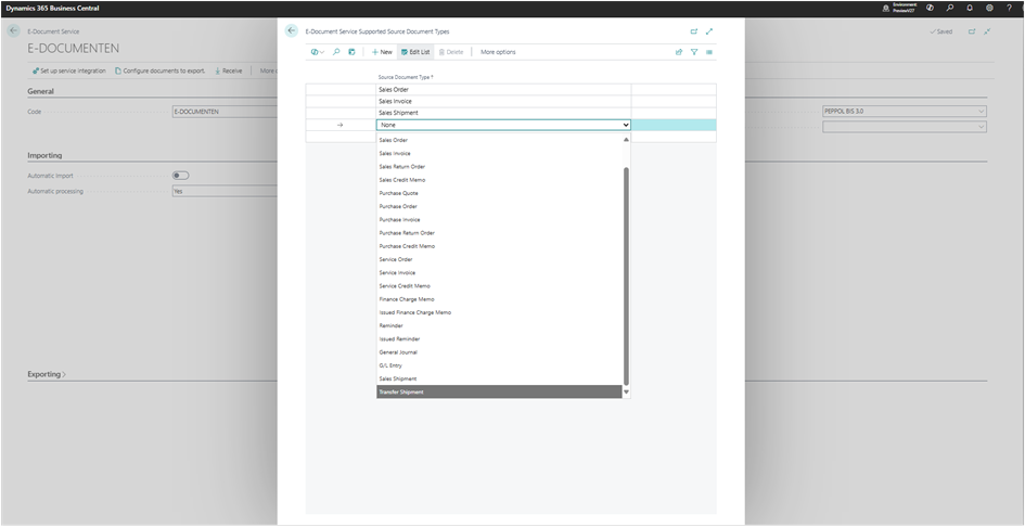 Business Central maakt het mogelijk om elektronische documenten te versturen in het PEPPOL-formaat. Dit is een veelgebruikt formaat dat ondersteund wordt door de grootste aanbieders van documentuitwisseling. Door nu ook meer soorten documenten – zoals verkoop en transferverzendingen – in PEPPOL-formaat te kunnen exporteren, wordt het makkelijker om informatie te delen met klanten en zakenpartners.